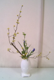 1/25 瓶花たてるかたち/山茱萸(さんしゅゆ)、アイリス、芽出し木苺