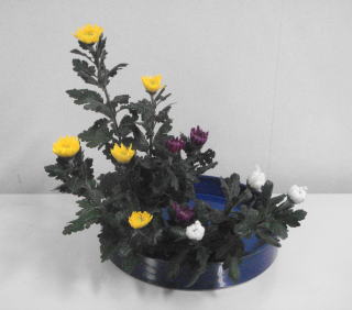 菊の三種挿しは、色彩盛花の基本となる格調高い作品です。
